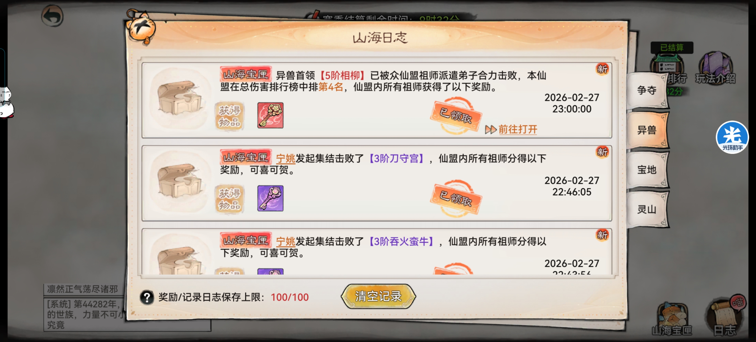 ②宝匣看仙盟的活跃,杀异兽越多自然获得灵玉也越多,只按平均来说每周1500-2000玉不是问题,领地结算可以拿400玉。