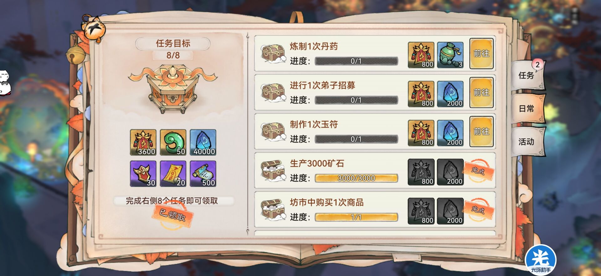 8:【春秋华实】白嫖灵玉的大头。①达标奖励=2200玉。