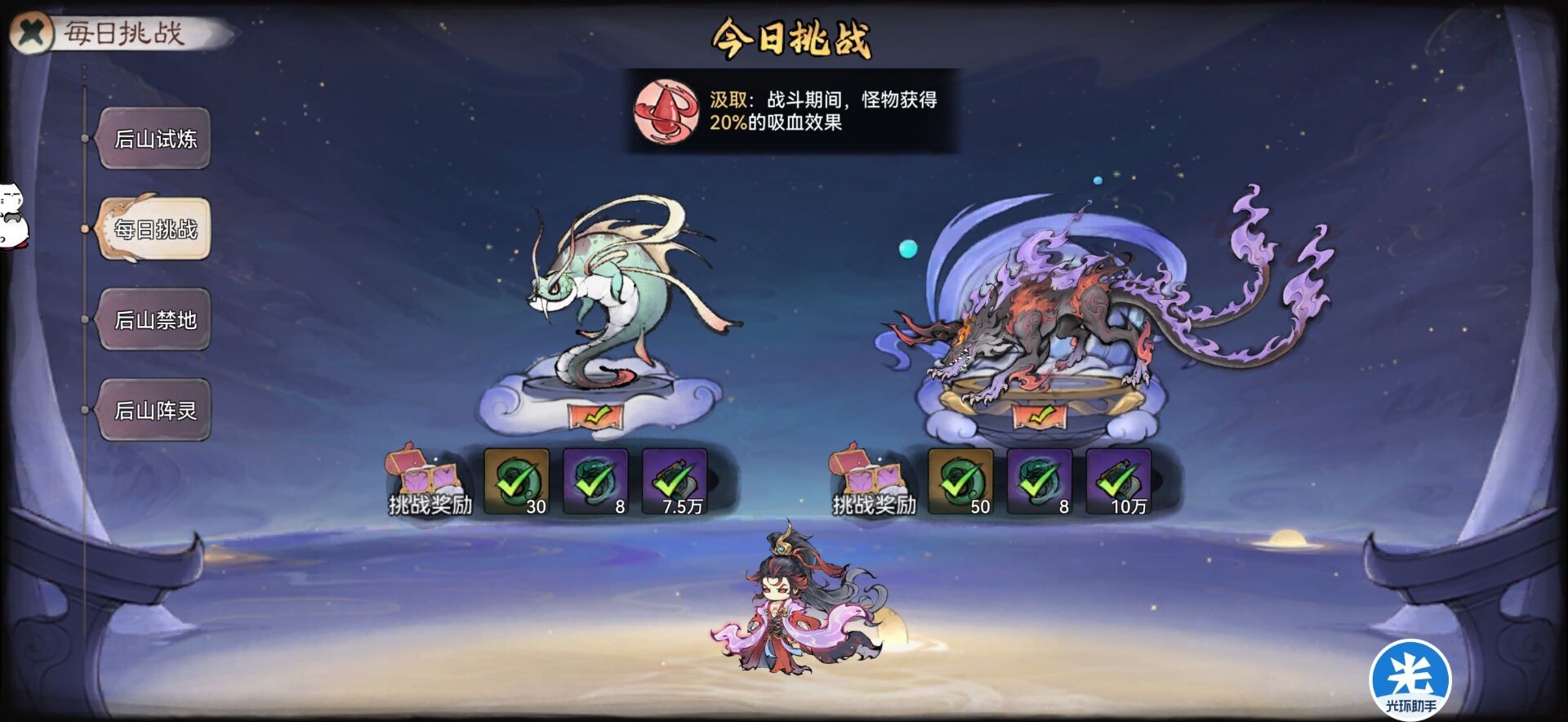 9:【后山试炼】每天可以白嫖80玉。