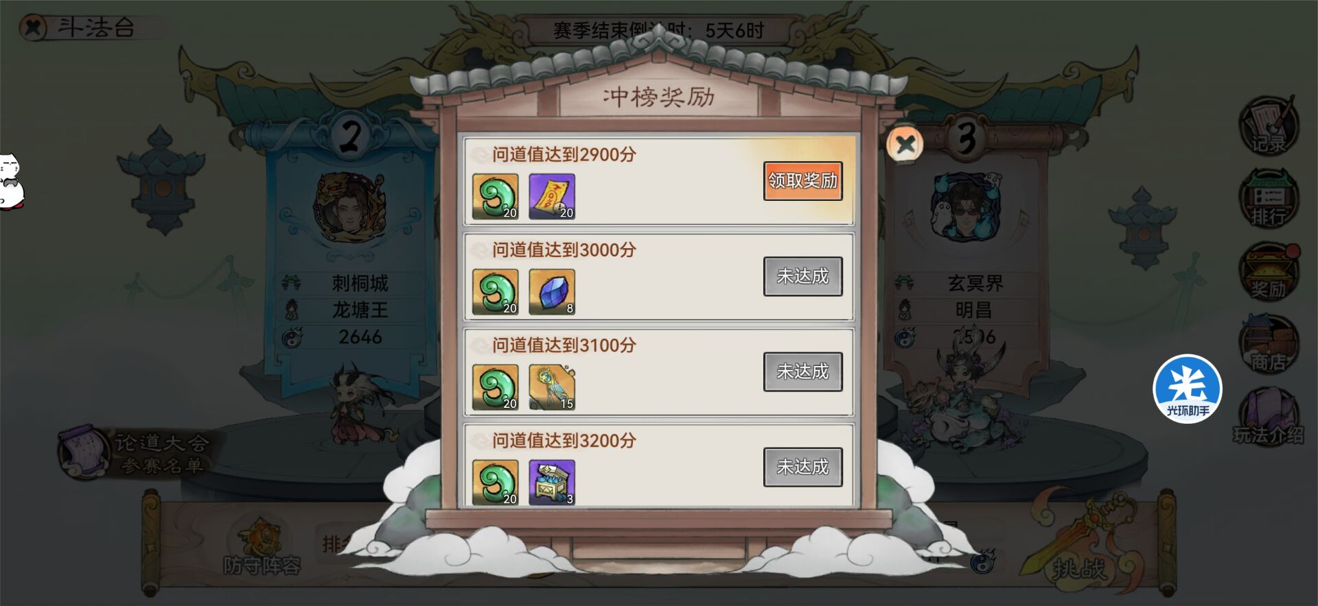 ①斗法台奖励可以拿500玉 。