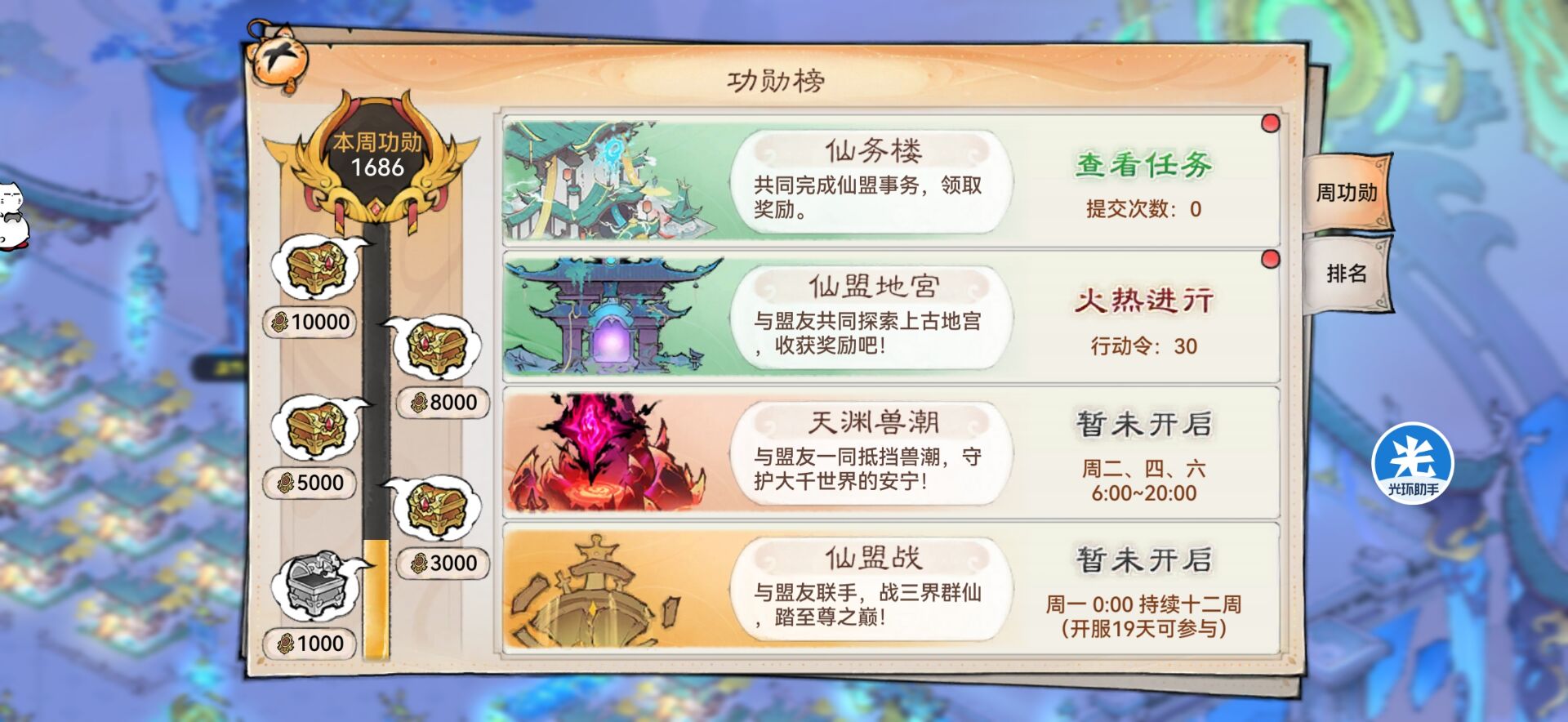 5:【仙盟功勋榜】每周可以白嫖460玉。