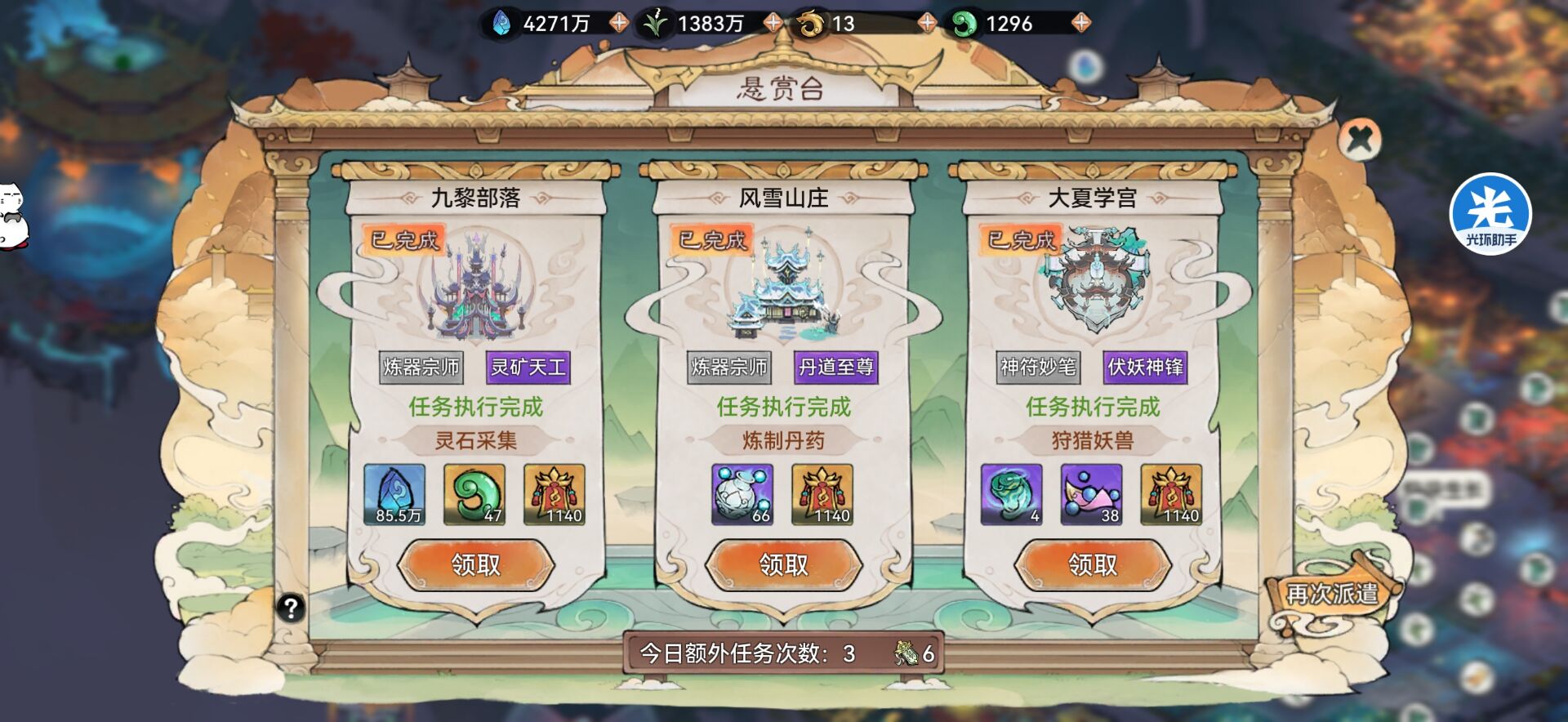 5:【攻打宗门】每天都可以白嫖灵玉。①大约1天可拿350玉左右。