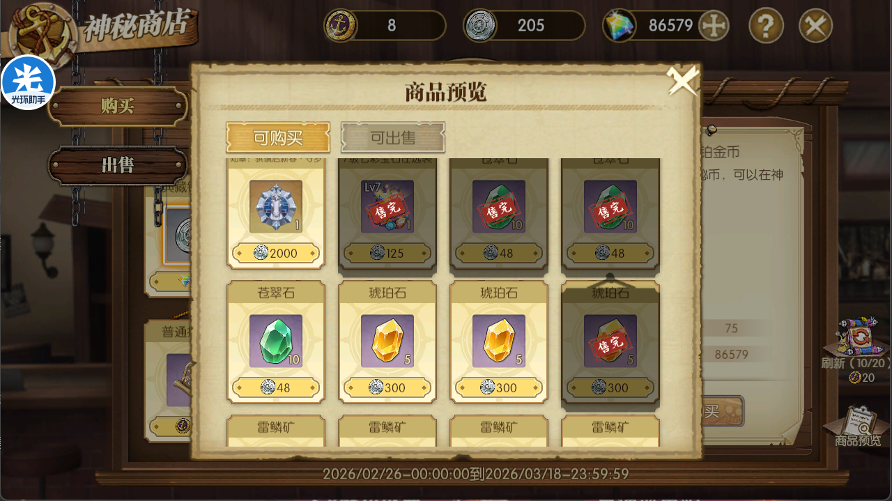 然后我们再来说说神秘商店的这个资源问题,不知道兄弟们都换了几个了,这个玩意确实费资源。建议大家还是按老王上次说的那样,中午刷10次,晚上刷10次就行,这样铜币不会浪费太多,而且这个幸运值是可以积累的,也就是一天能出一次大奖!
