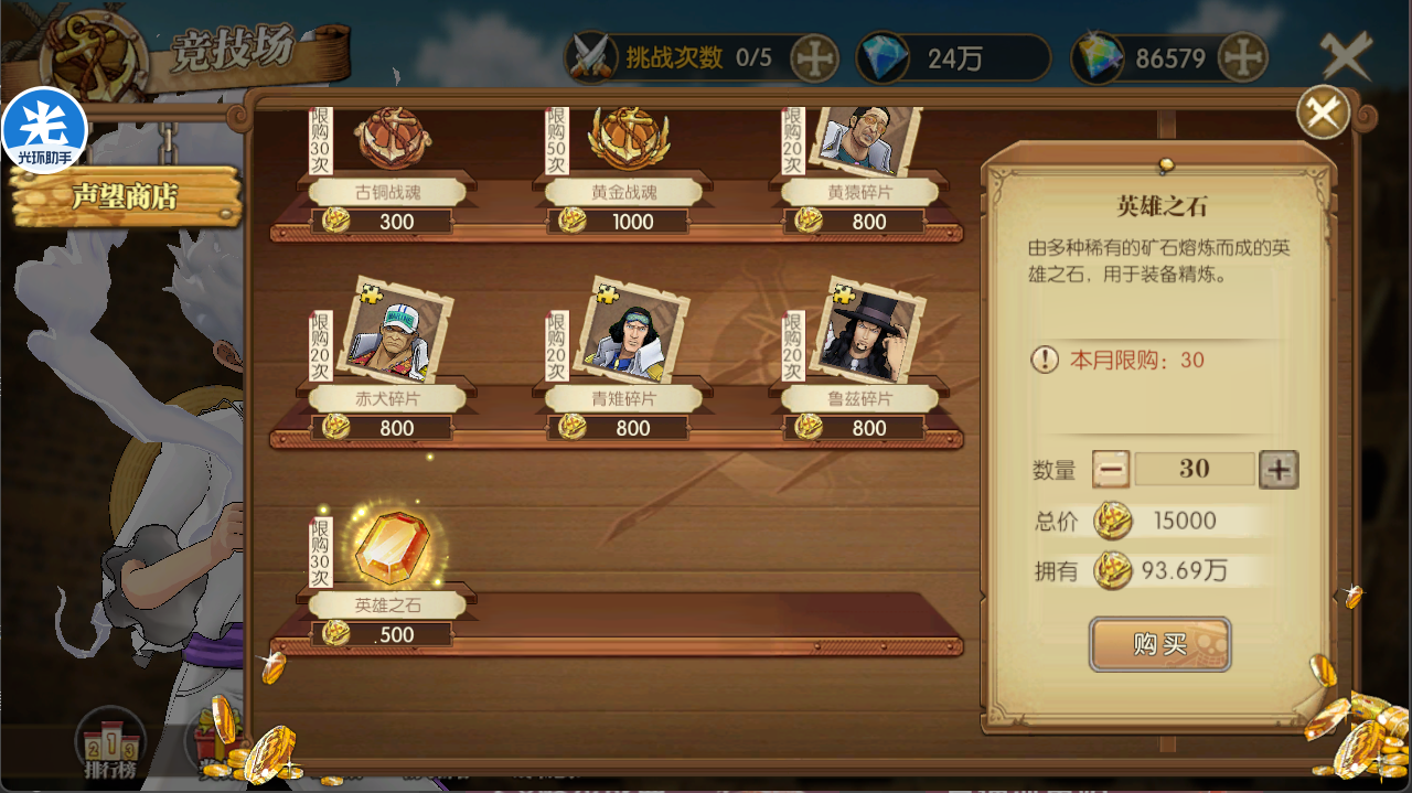 首先英雄石的获取是这个竞技场商店,这个玩意里面的积分除了换金魂好像也没啥用了,所以为了以后的神秘商店大家可以把多余的积分换英雄石。