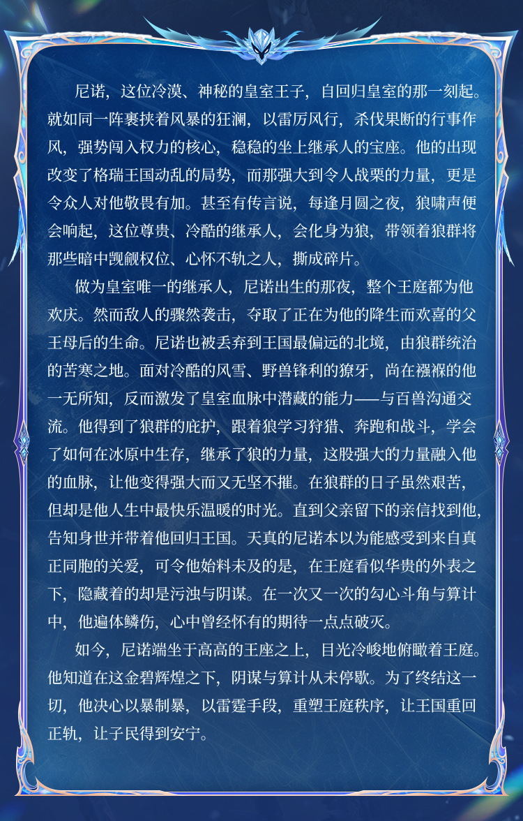 新皮肤爆料丨最新神装【霜月狼主-尼诺】细节爆料来袭!3月6日0点霜狼环侍,冠冕为主~
