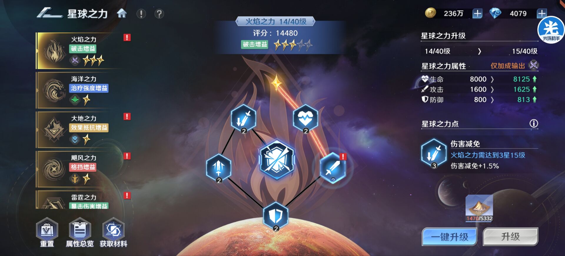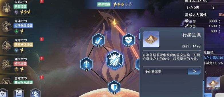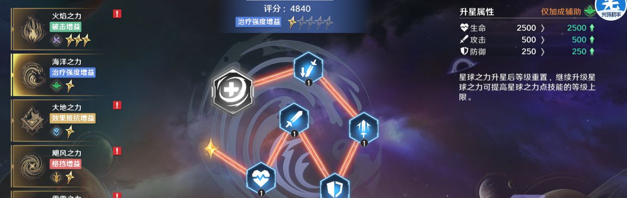 ③此外【星球之力】也可以升星,星越高自然属性加成就越高。