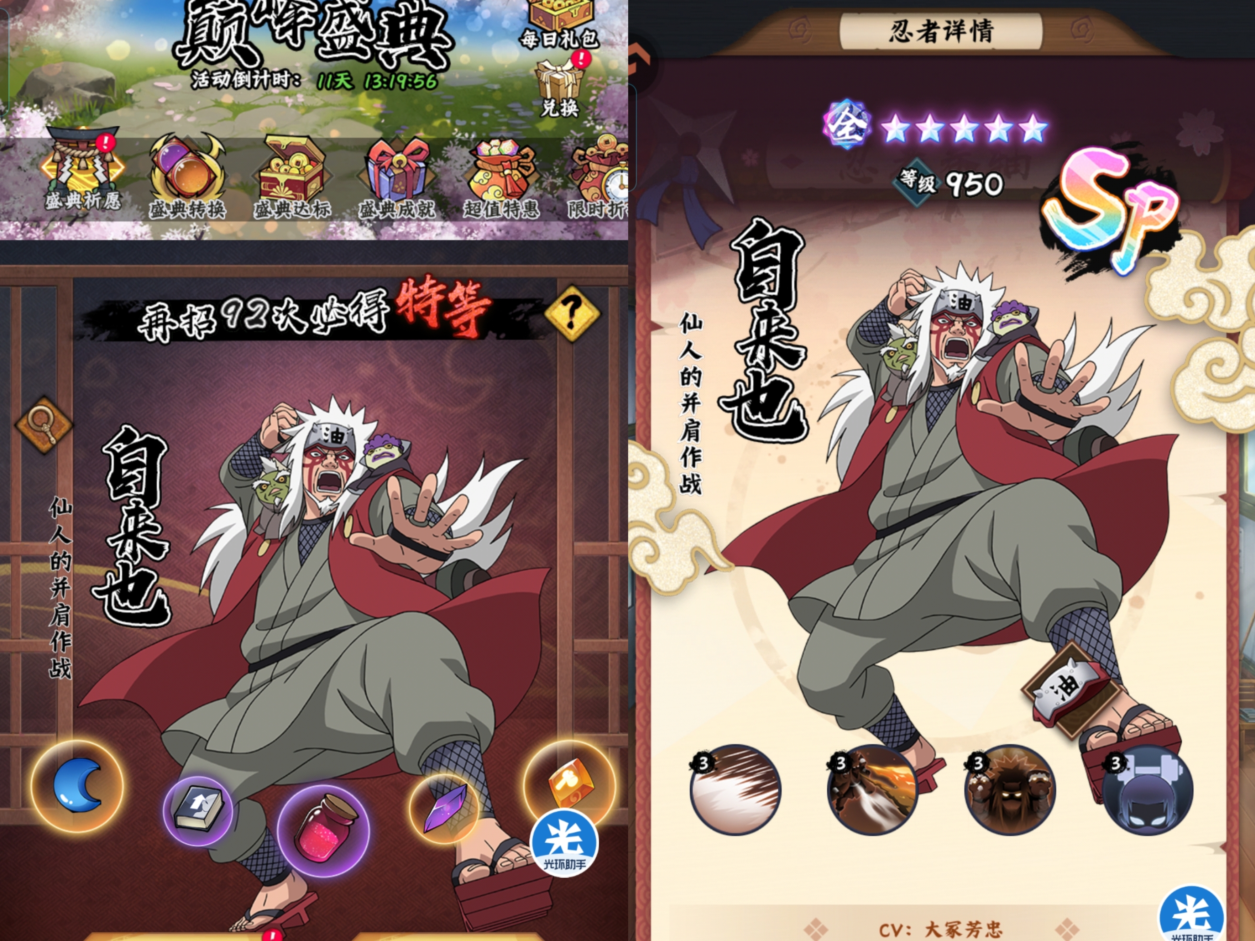 ok,言归正传本期攻略狮子给大家详细讲讲自来也的强度,看看到底适不适合大家去抽?那么跟着狮子进入本期攻略吧!