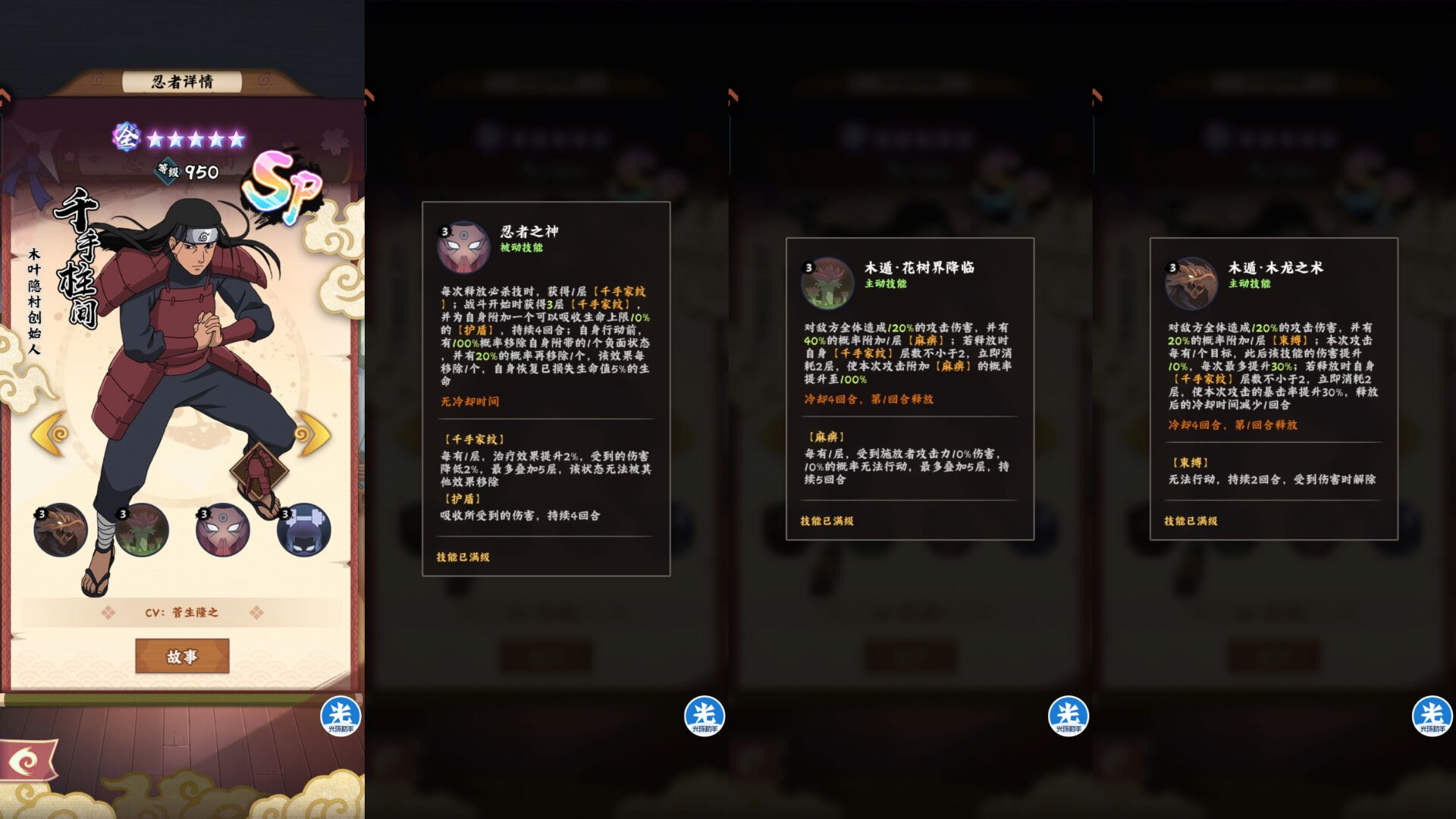 然后在队友提供的生存和速度加成下:让自来也可以更好的拖回合利用自身【反击:最大生命】、二技能先手的【最大生命】以及【专属30级】开局最大生命去打伤害。