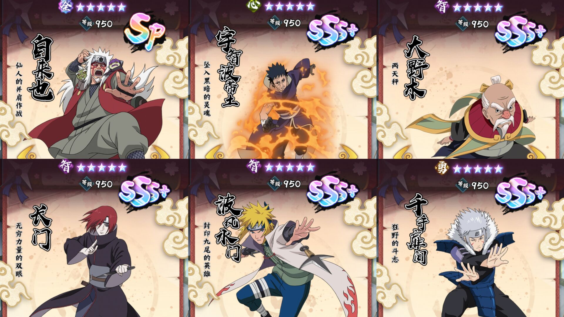 ②sp自来也+带土+大野木+长门+二代火影+四代火影。