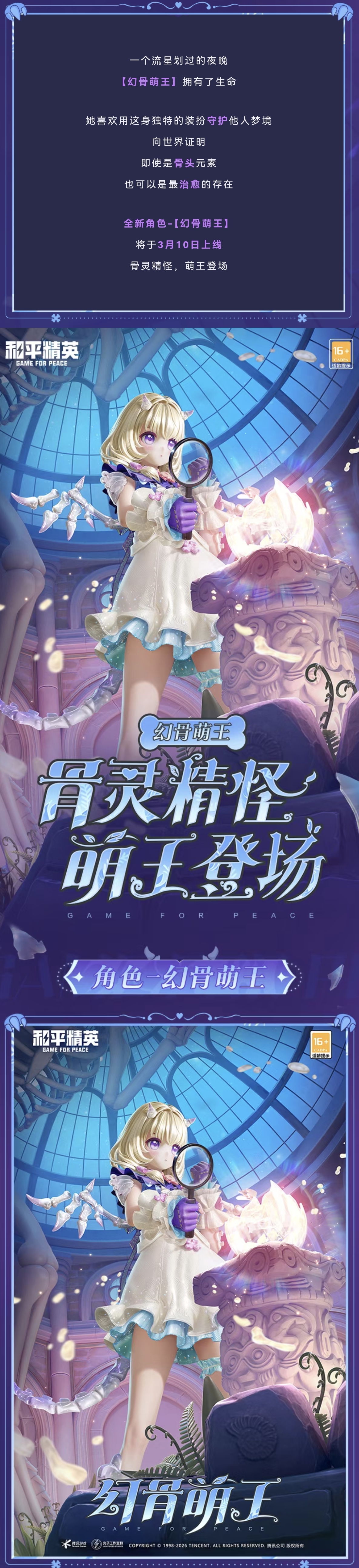 新皮肤爆料丨骨灵精怪,萌王登场!全新角色-【幻骨萌王】将于3月10日上线~