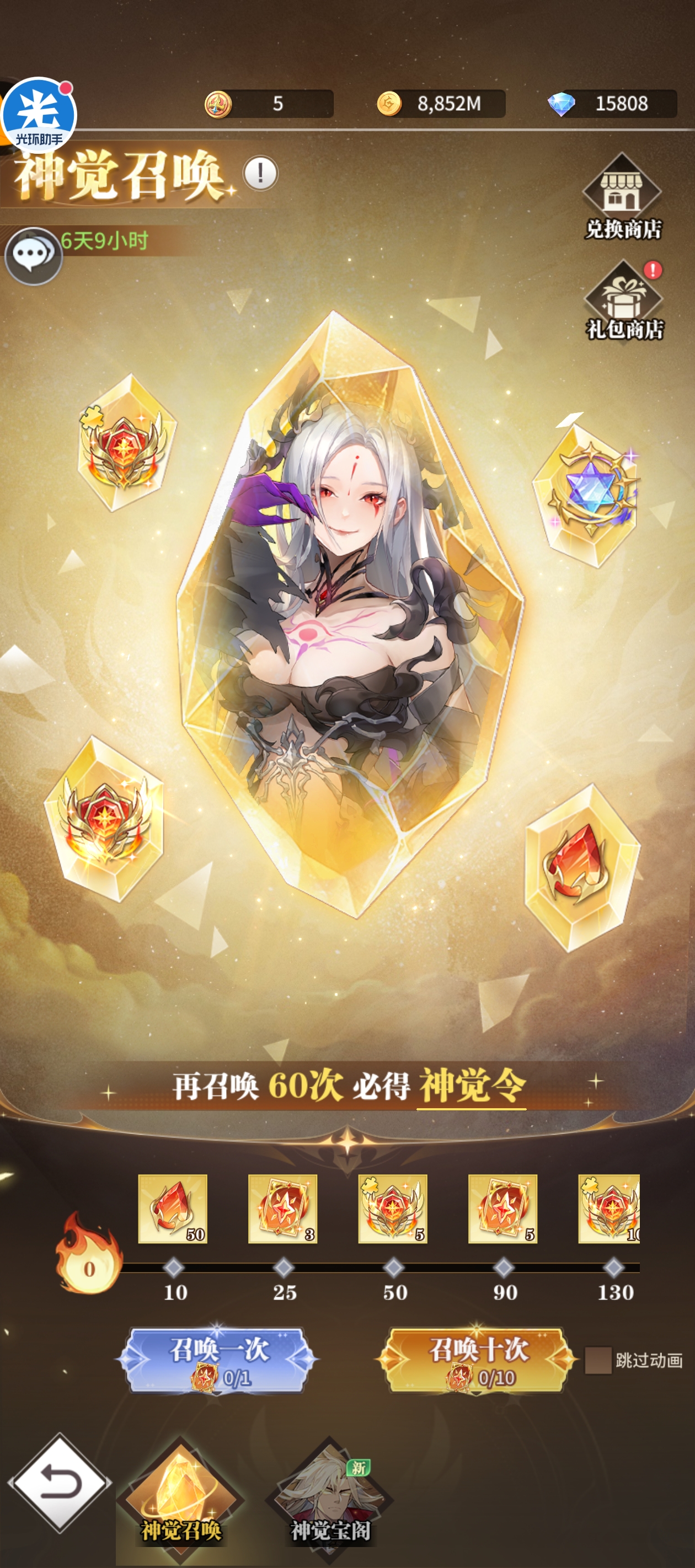 五觉:需要480抽(保底8个,抽48碎片,送25碎片,商店25碎片差两碎片10个)