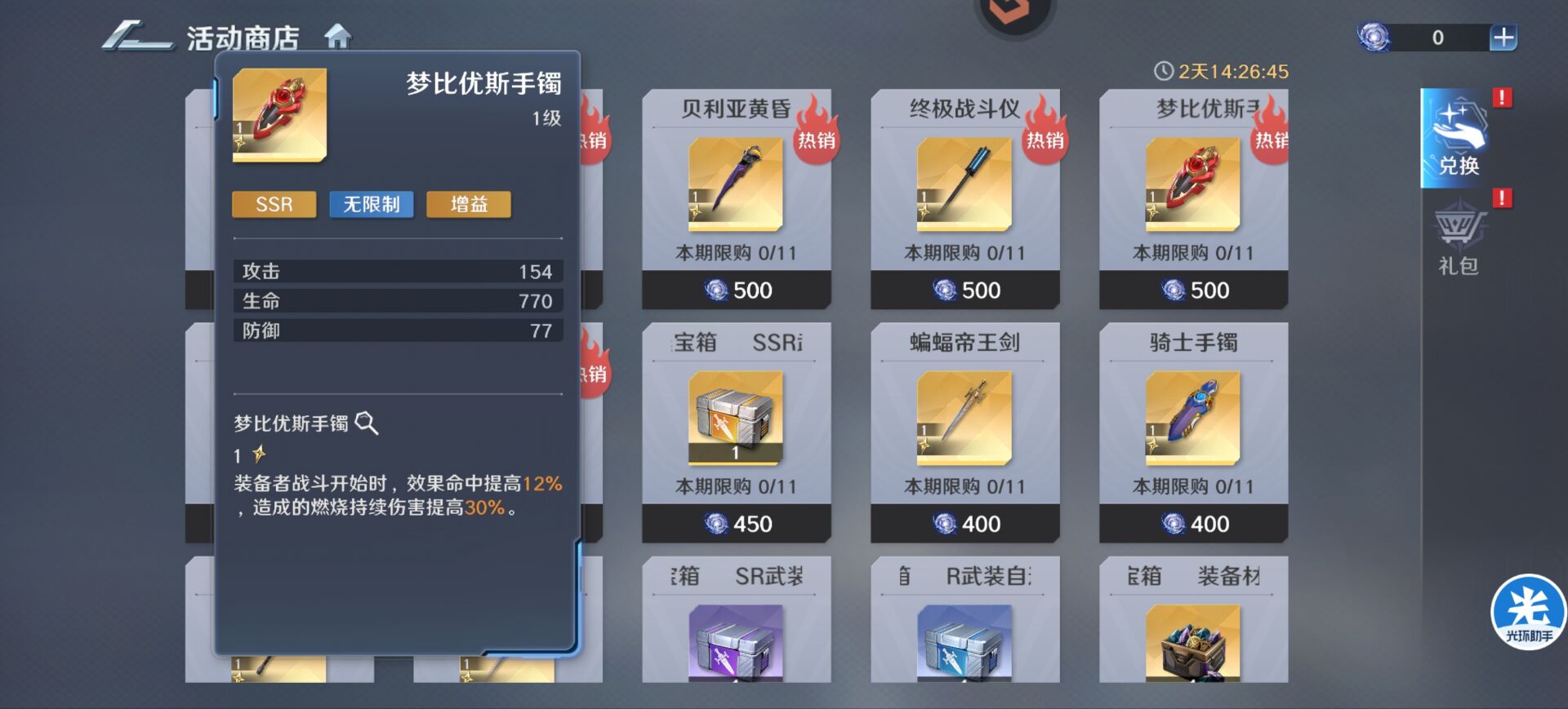 1:专属选择【梦比优期手镯】。