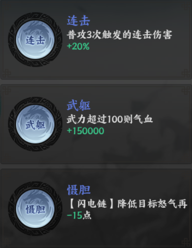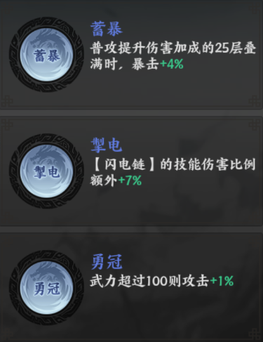 适合初始武力值高的武将,如赵云、典韦、汉献帝等高频普攻型武将。