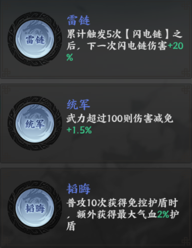 主提供伤害加成与气血加成。突破至3星在小兵阵亡后提供护盾,提升了生存能力;5星可大幅提升闪电链的基础伤害系数,从120%提升至165%,使输出质变。