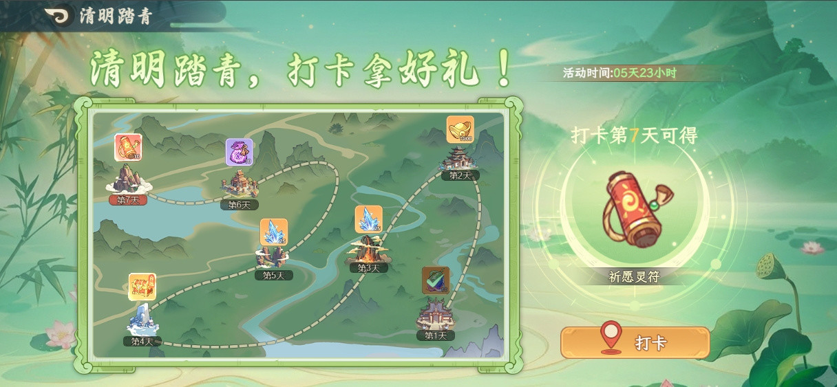 清明踏青:7日打卡,可获得元宝、太玄冰、祈愿灵符等奖励;![]()