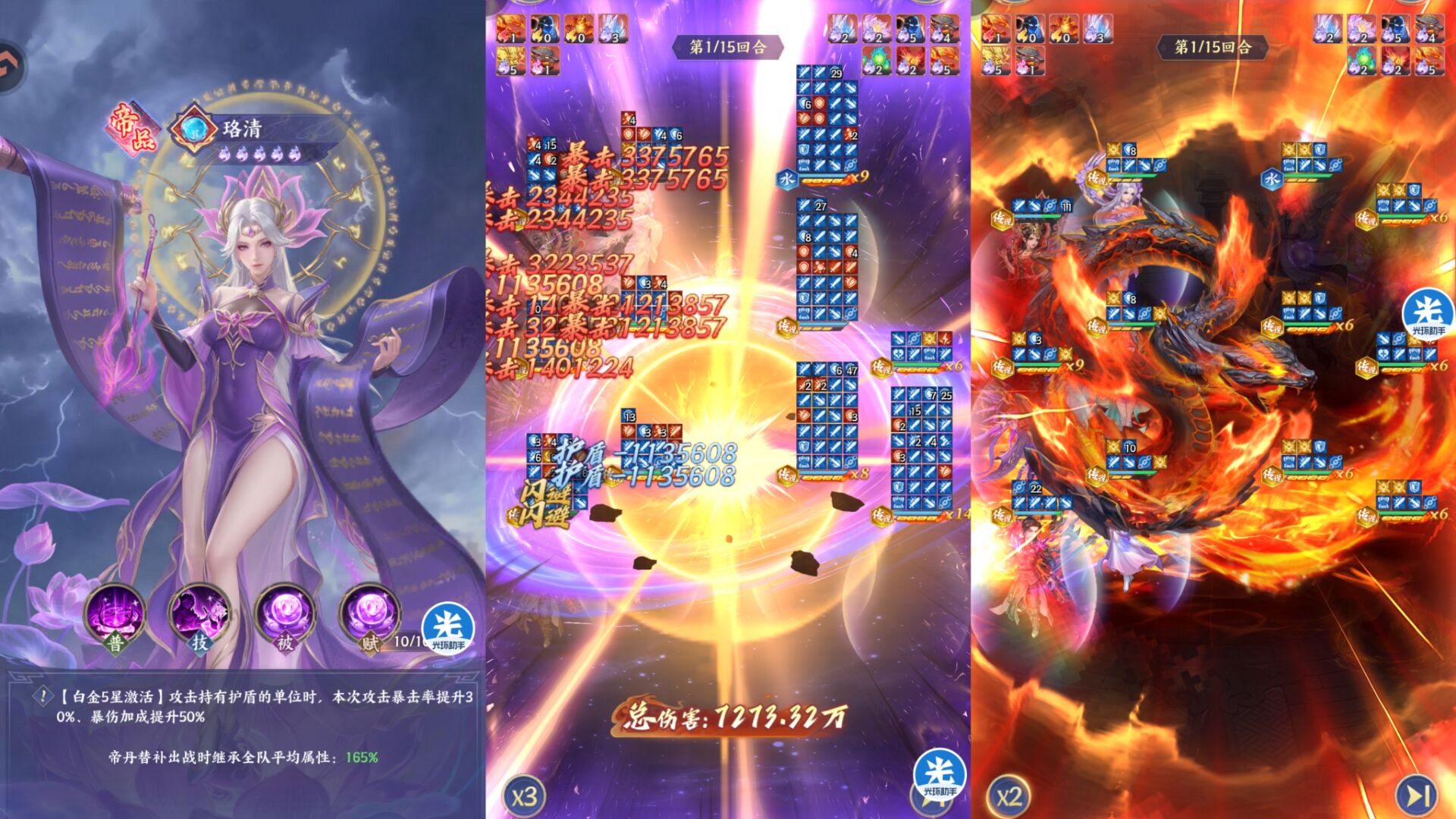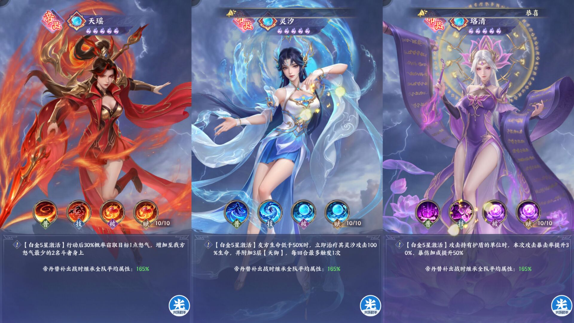 ①首先爆发高:珞清在三个红色帝丹中爆发最高自身也有高增伤,可在pvp中用于替换上场进行收割残血敌人。