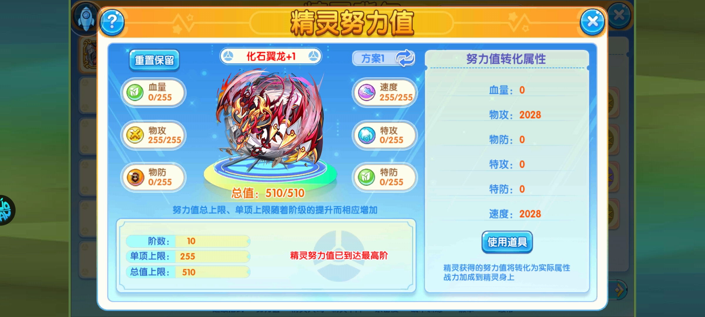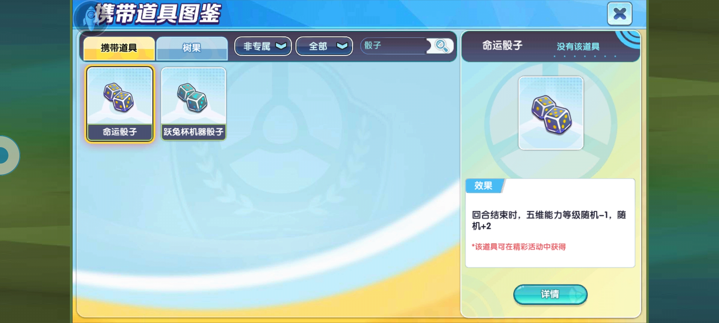 命运骰子这个道具,非常适合那种自带能力变化或者有高肉度并自动回血的精灵,而化石翼龙属于后者,这个道具特效是回合结束时,五维能力等级随机-1,随机+2,简单看好像很一般,平均下来每回合就加2层buff,还要掉一层buff,但是账不能这样算,因为它属于六边形战士,buff加持有大概率不亏,如果加到关键点上,就非常恐怖,比如内战你速度加2,对方绝对脑壳疼。