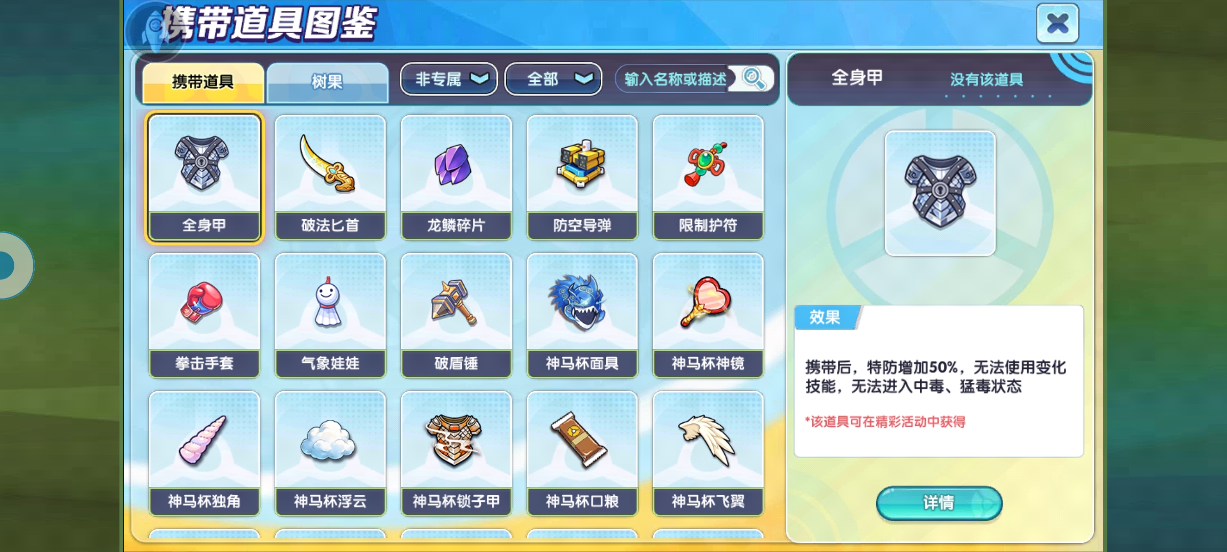 或者特防、物防/特防背心、全身甲、棉被等道具,这些道具里面除了棉被和穿刺都是容易白嫖的,这里说下道具作用,后面就相当于提升肉度的对策卡,全身甲防毒增加特防,必要时候和洛对轰,棉被防止腰带洛人品的冰冻。