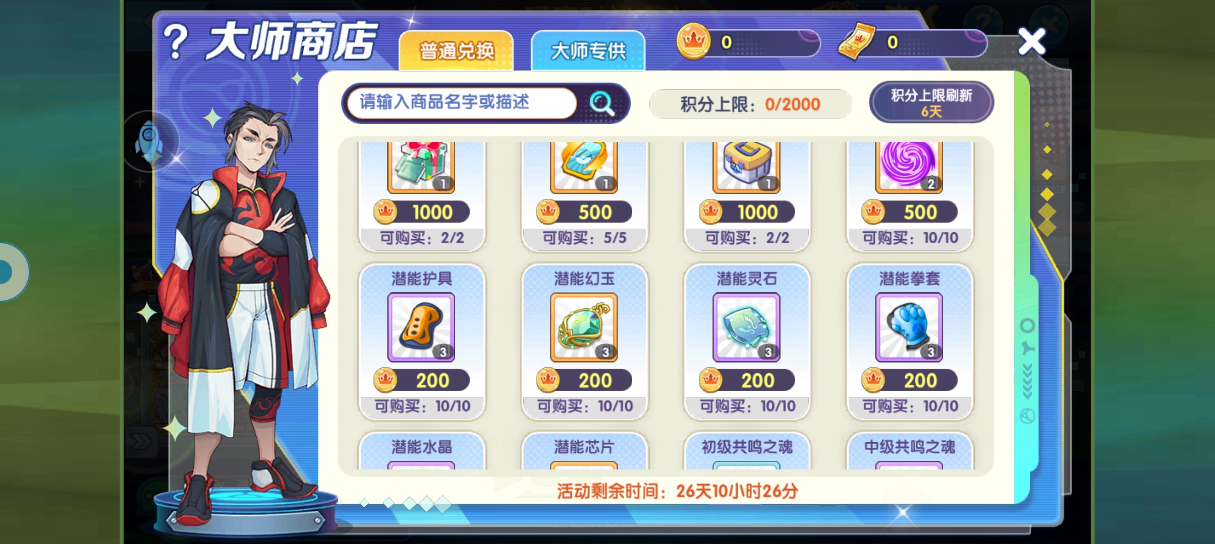 兑换奖励一共有两种,一种是普通兑换,还有一种是大师凭证,我们现在看一下普通兑换,普通兑换主要兑换一些培养资源以及部分技能礼包,这第一张图里面最值得兑换的就是大师凭证