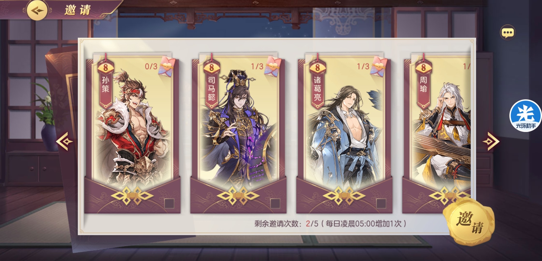①右上角的充值按钮,点进去会有一个每周/每日免费福包,记得领取。福包可以略微提速武将的培养