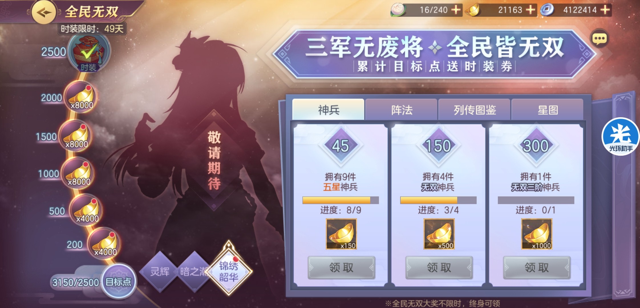 ⑤如果花元宝没有概念的玩家,建议第三档全民无双的侧边栏元宝不领取,以免乱消费