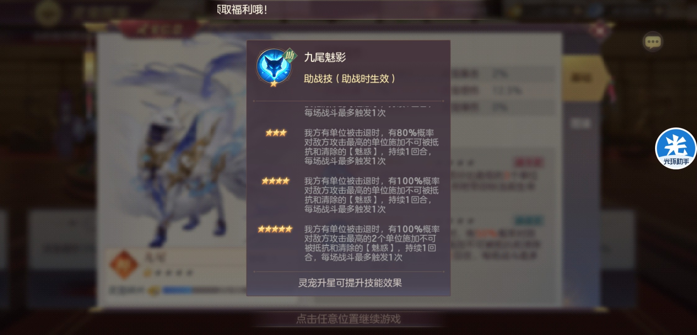 增益BUFF看一下有没有灵宠勋章加成,这个效果优先选择,实在没有再点别的,如果推图有压力的优先选择增减伤。