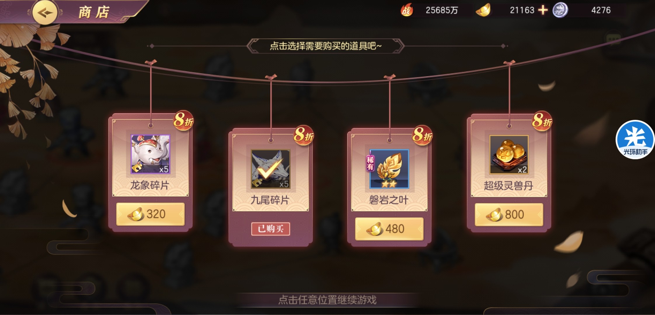 商铺的话,只够买橙碎片,其他不买。旁边那栏不管蓝紫都不买。