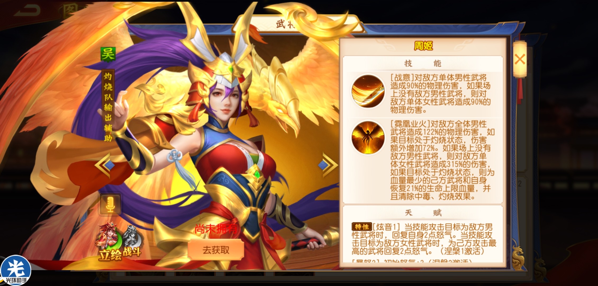 周姬是唯一可以最为单输出武将培养的金将,在周姬极限资源后,还是可以越战不少国家阵容的。