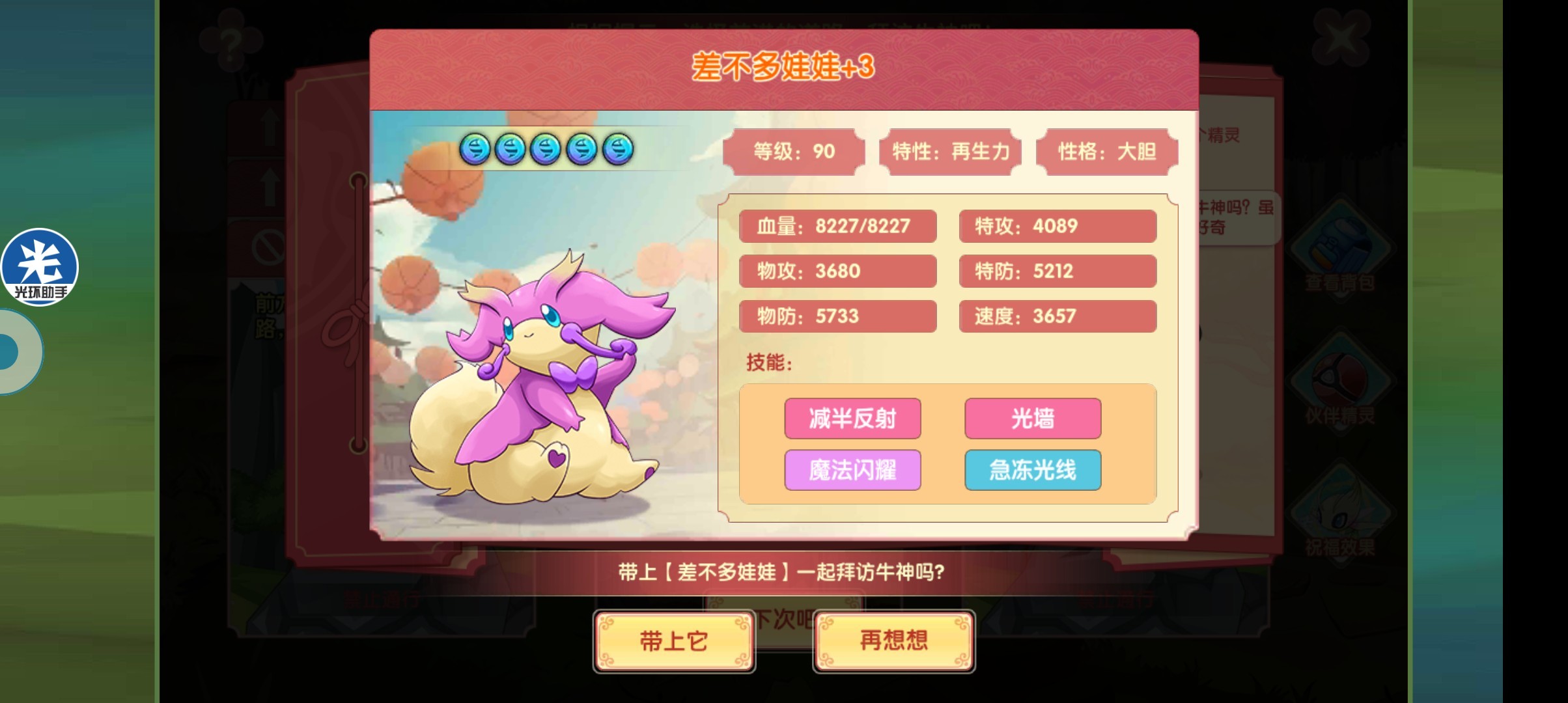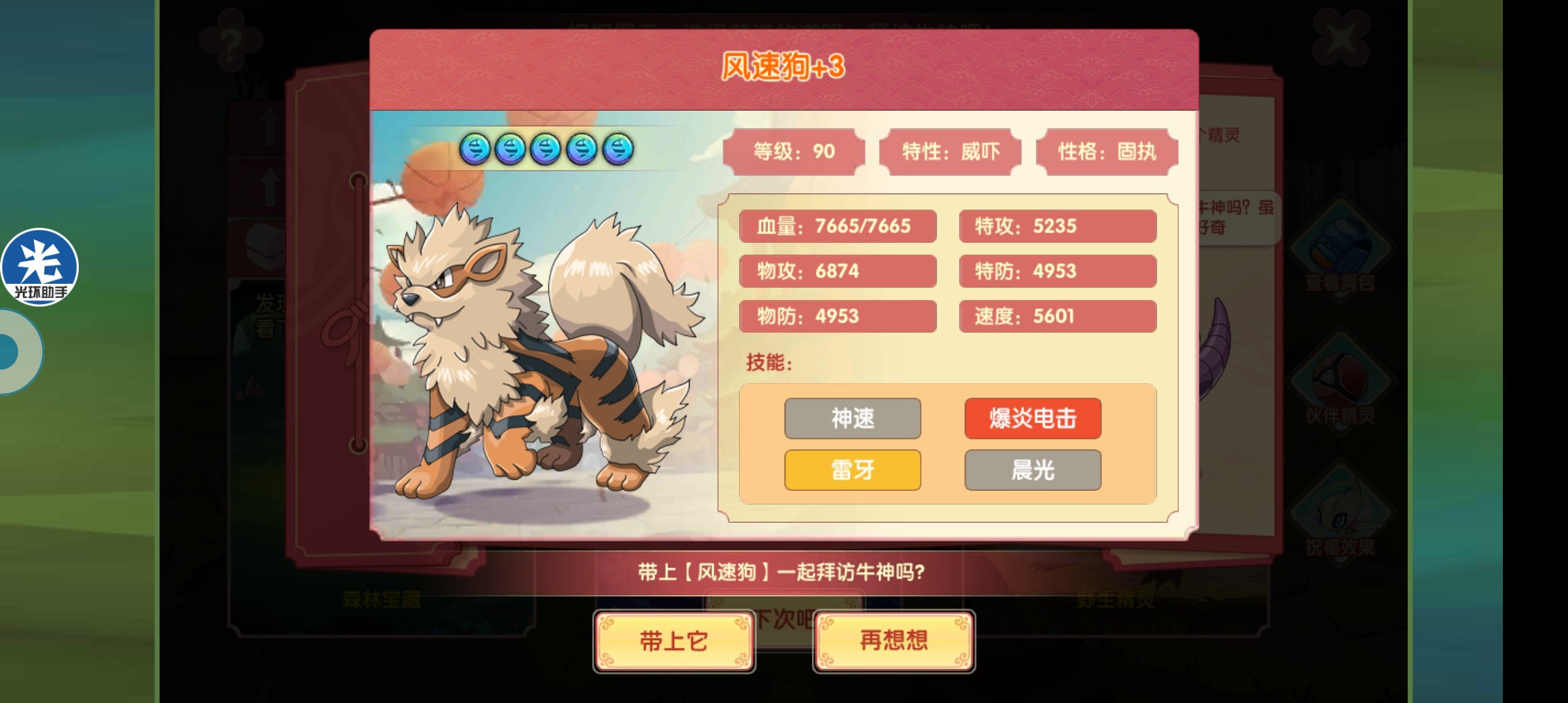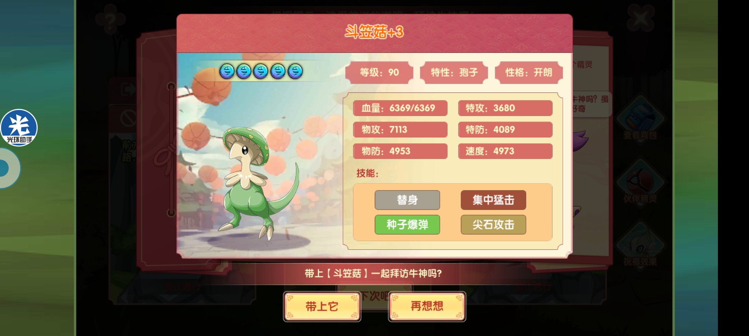 森林之神是一个雪拉比,模样的小精灵它可以为我们增加buff