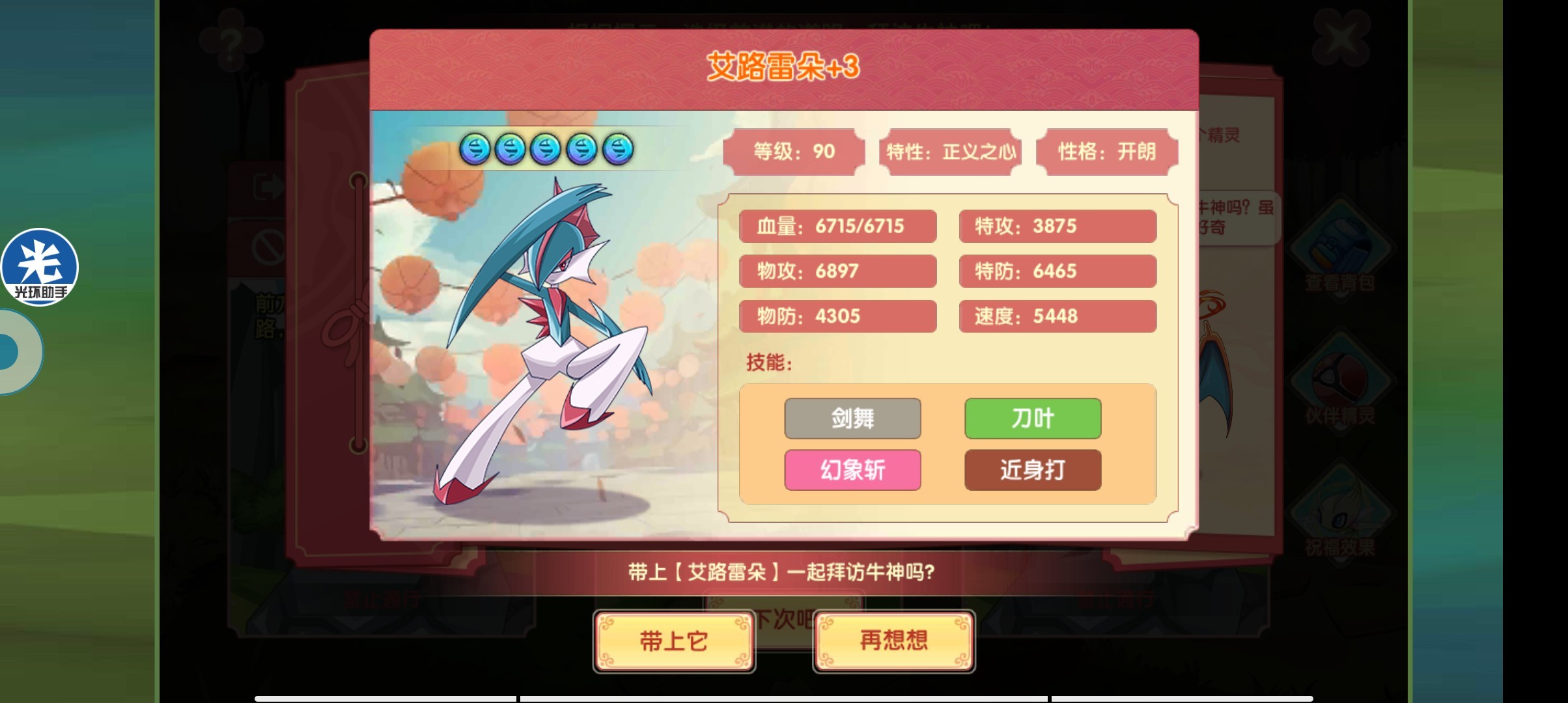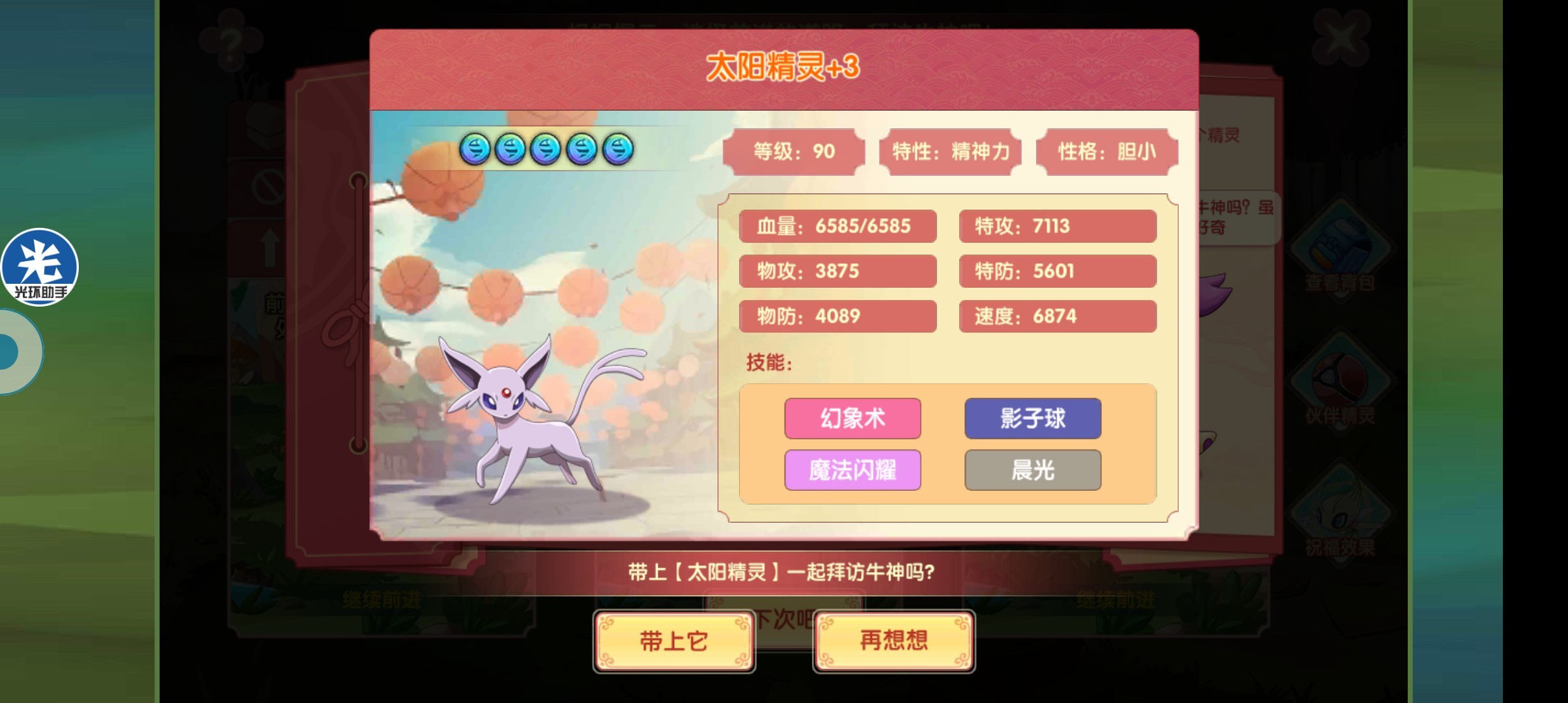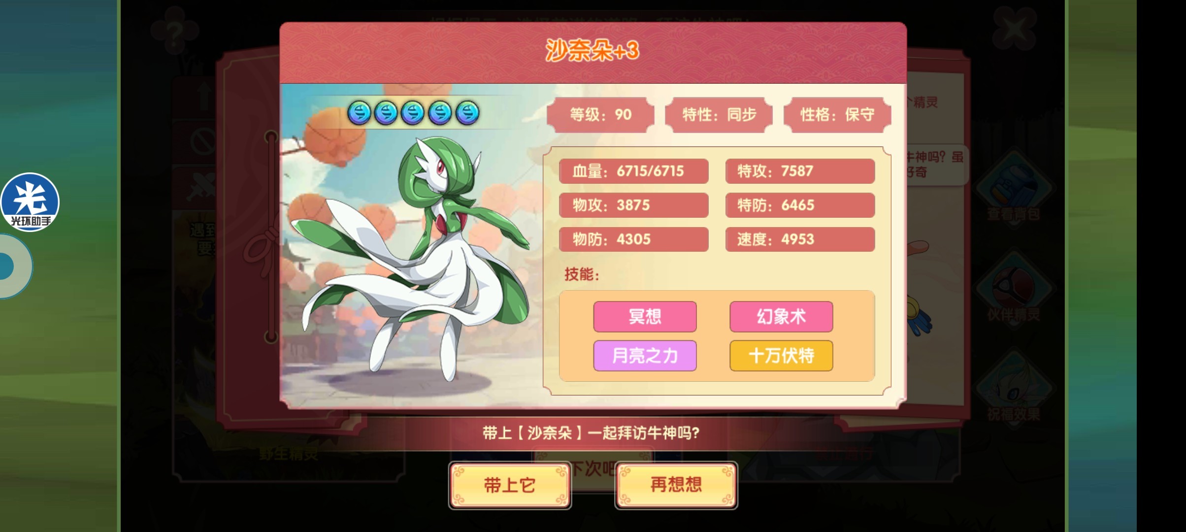 森林之神是一个雪拉比,模样的小精灵它可以为我们增加buff