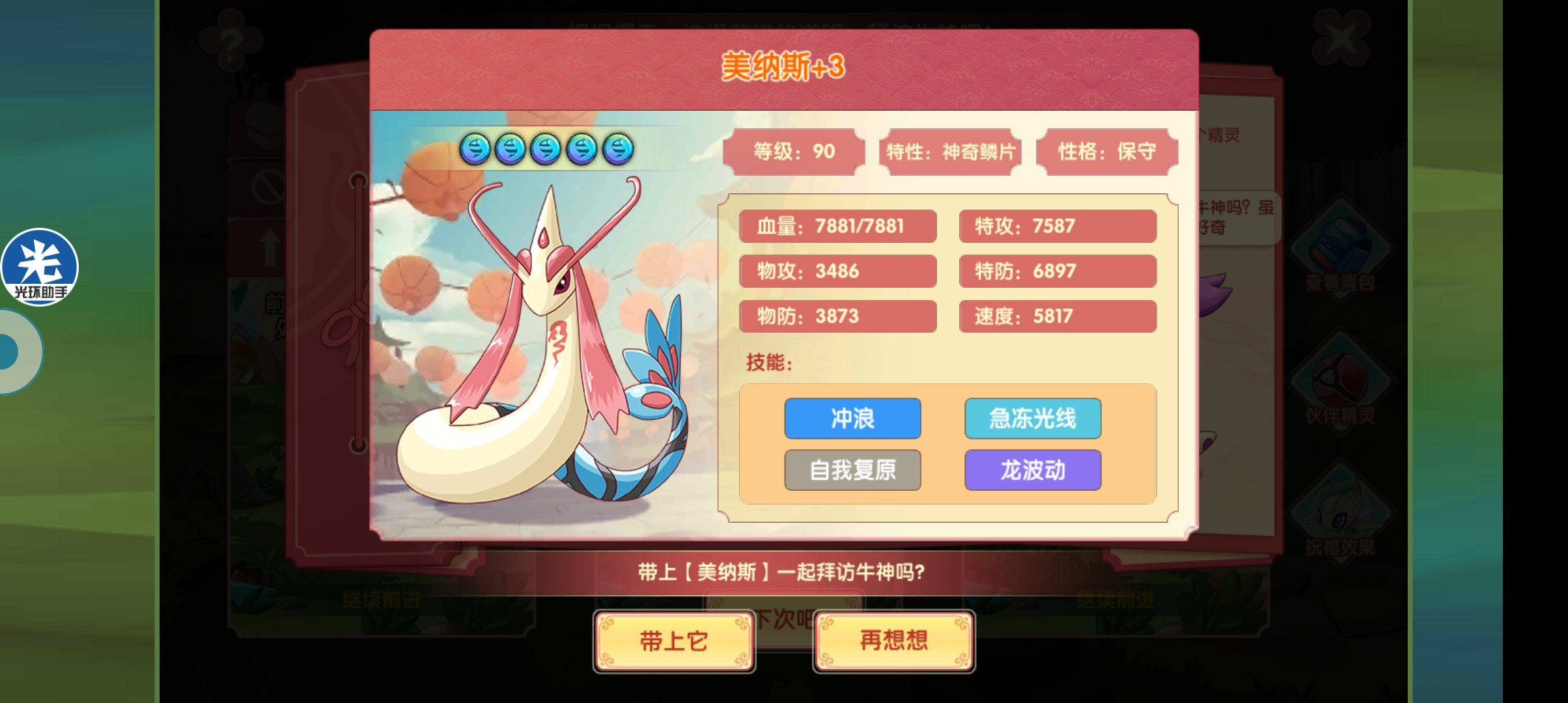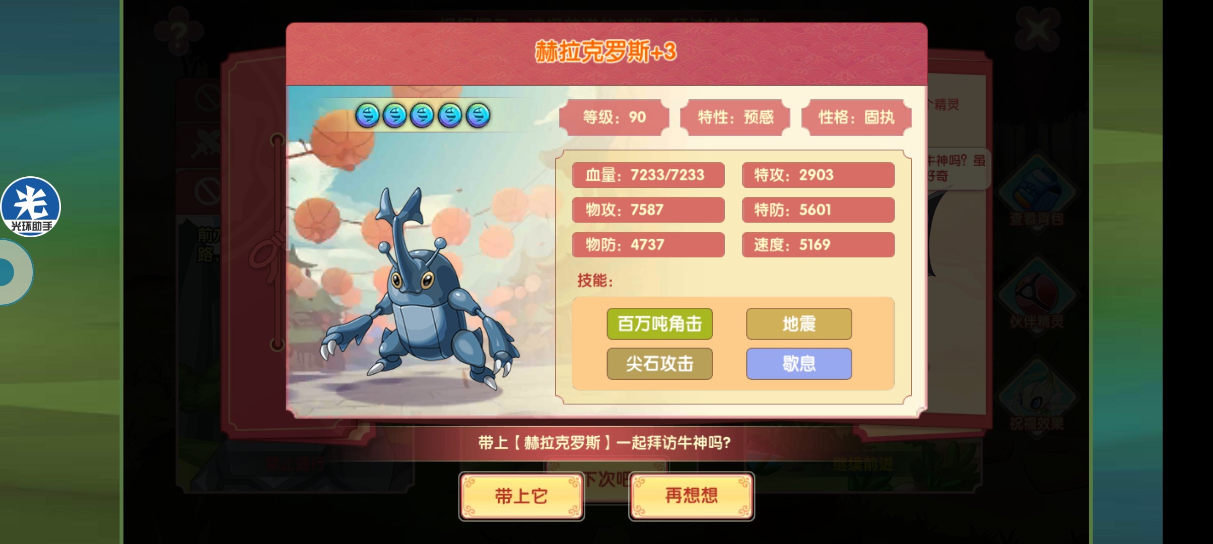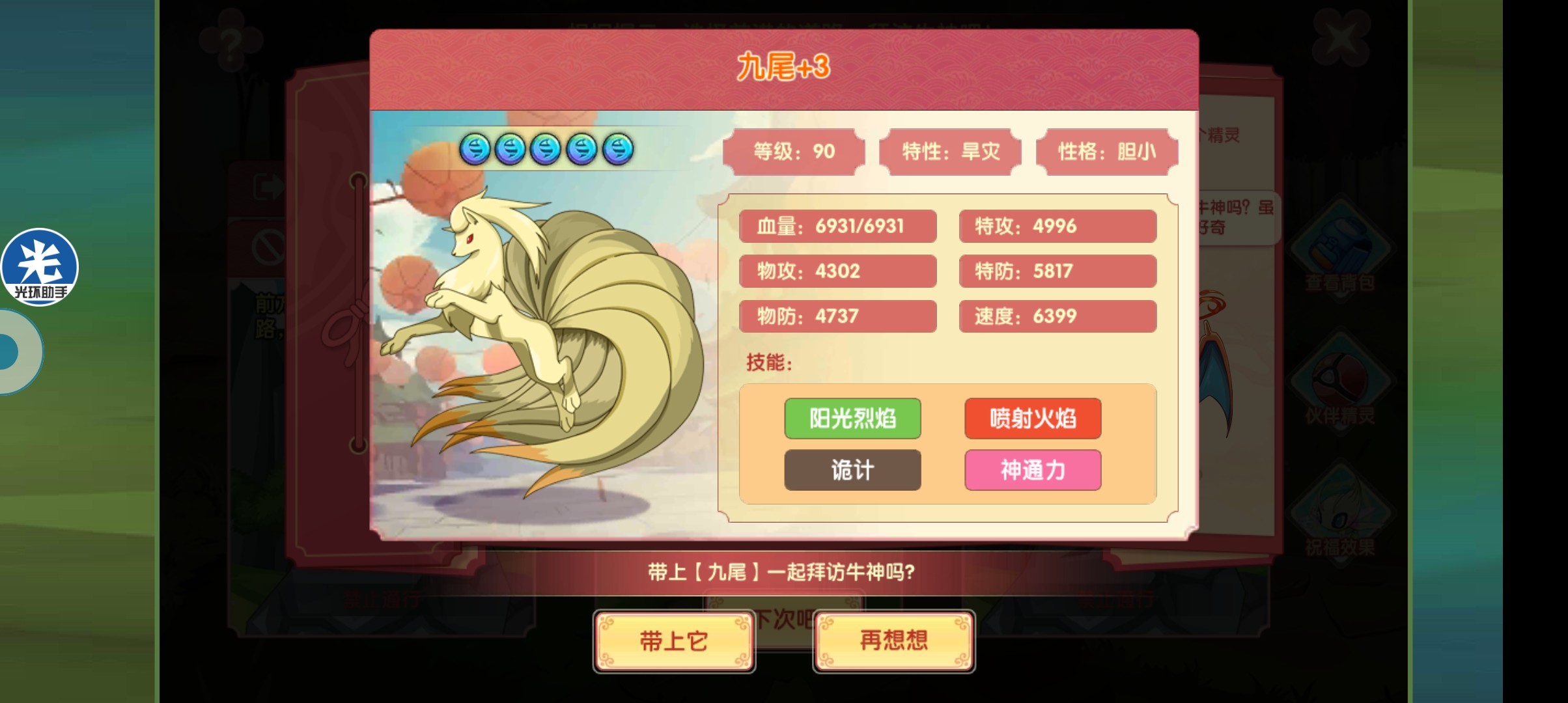 至于那一个骑士蜗牛,可以选择九尾配合火属性宠物去针对,因为九尾的特性会旱灾,可以提升威力可以说是相当的不错,很推荐