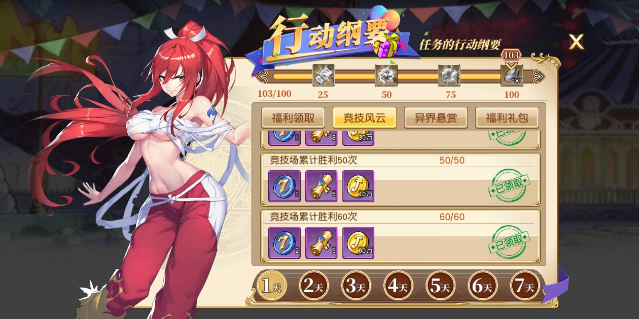 两个任务都没什么难度,竞技券和悬赏,都可以很快的打完。