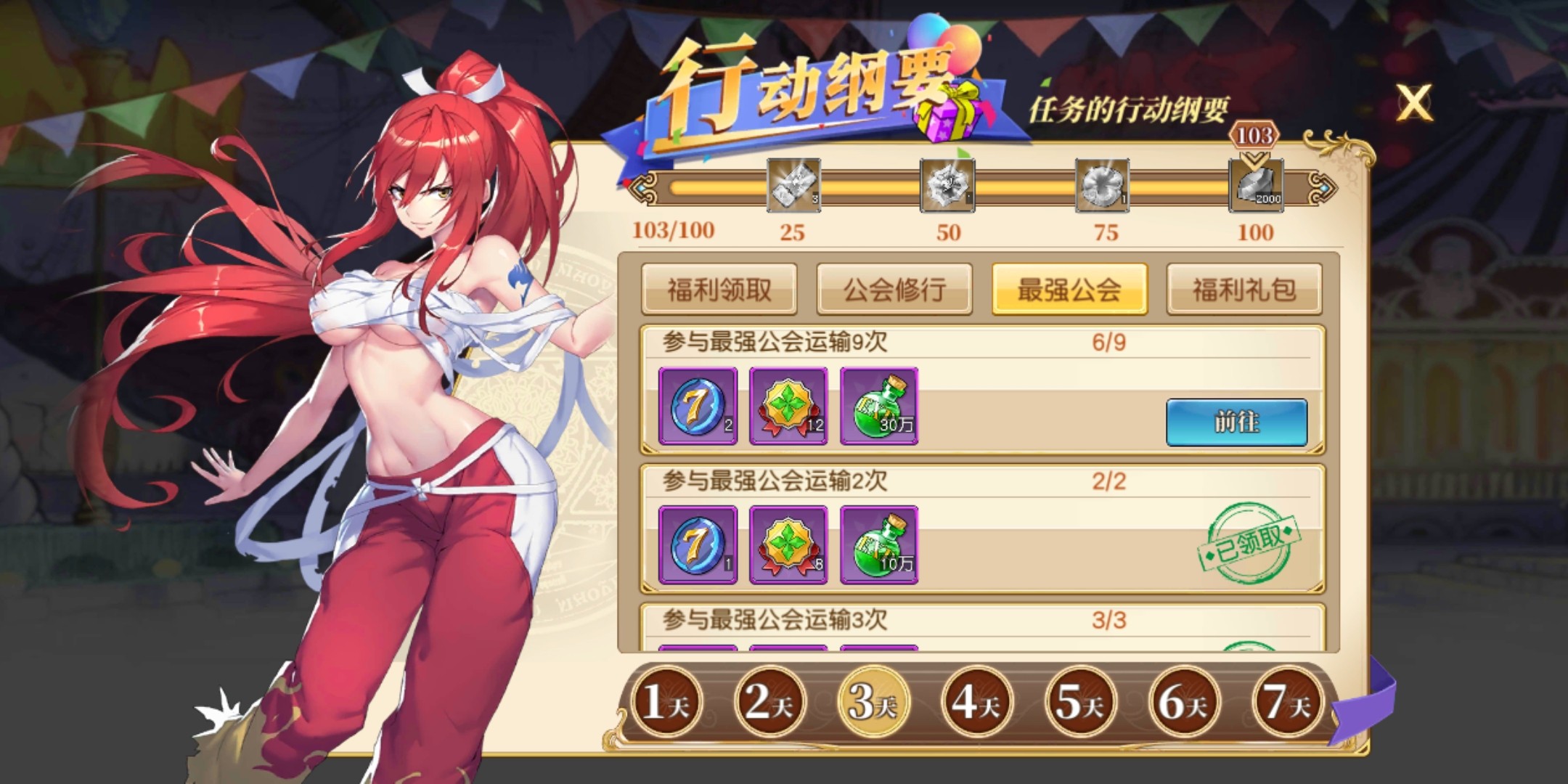 公会修行稳够,最强公会运输,记得参加,忘了就没了,