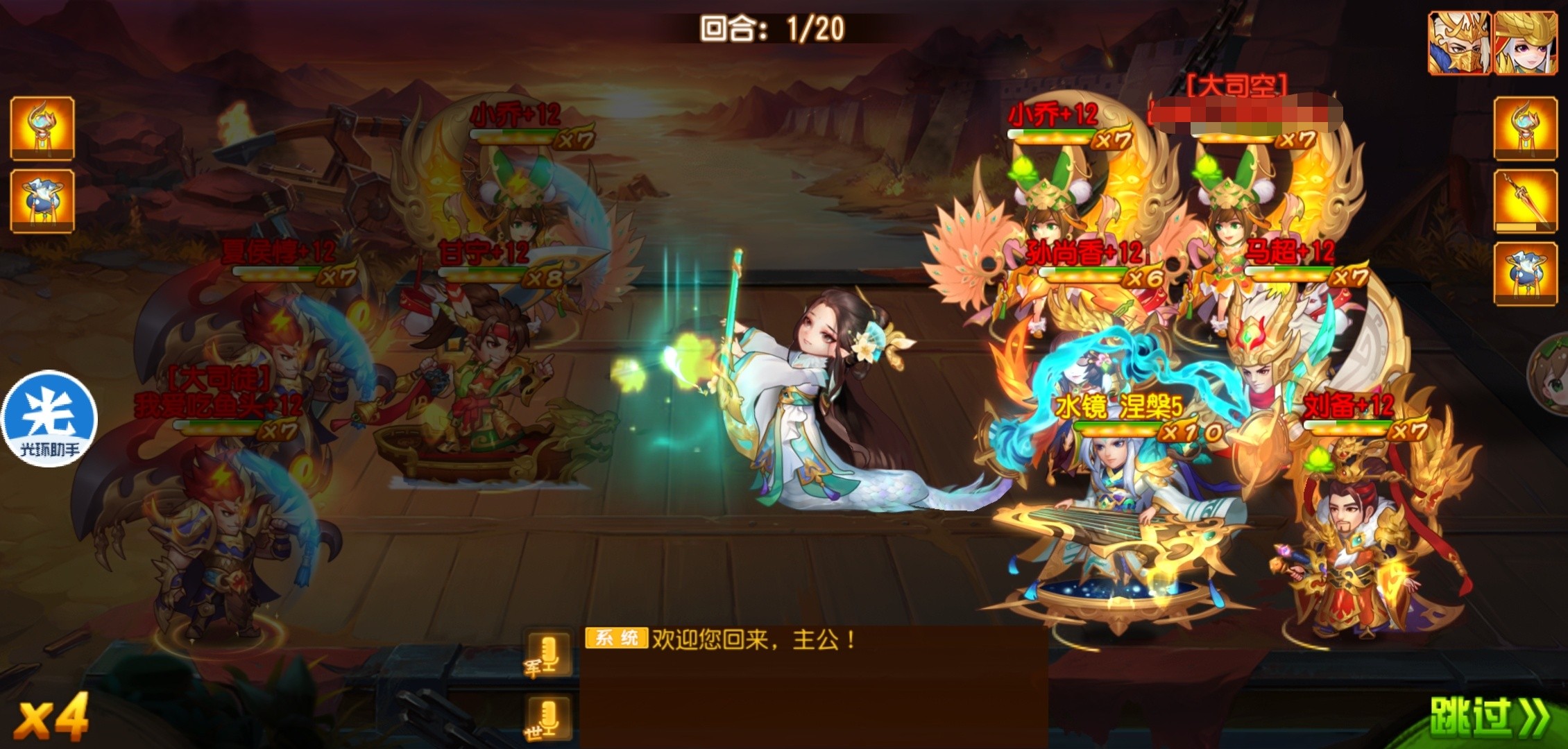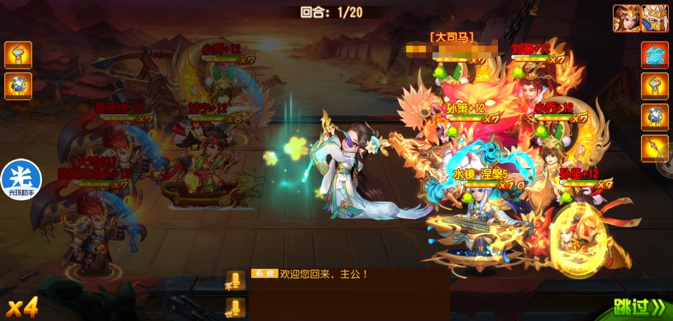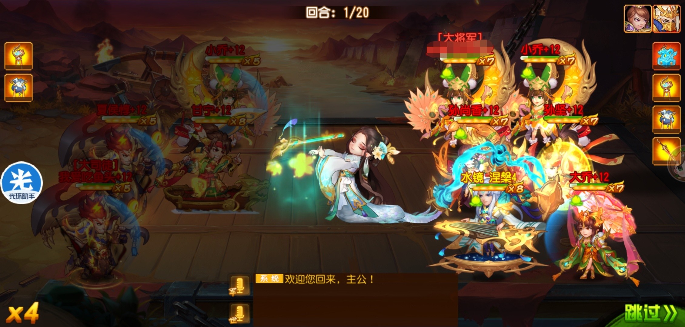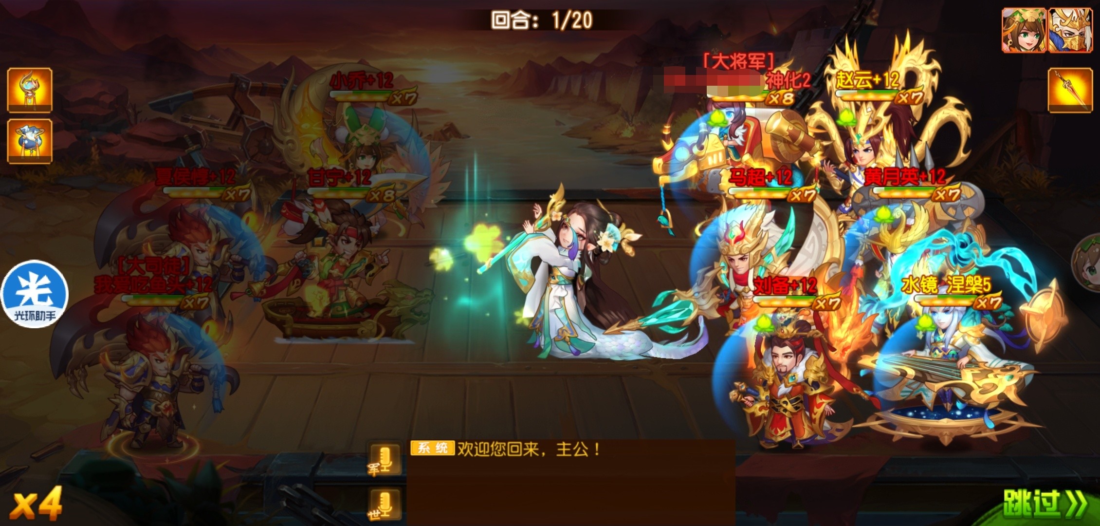 极限资源的水镜配和多辅助武将,实现出手极限秒杀,持续输出的效果。