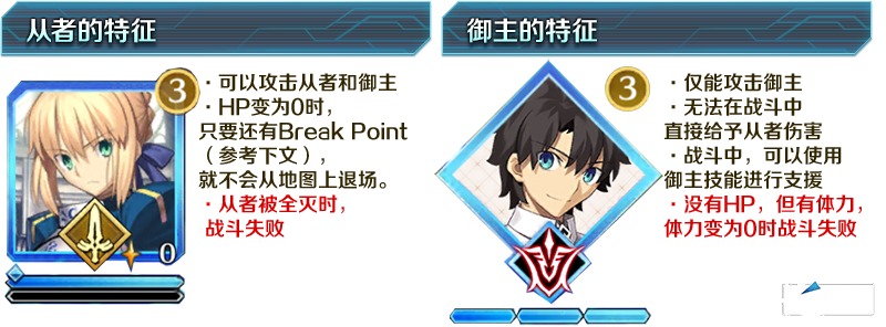 Break Point为0且HP变为0时,该从者视为被击破并从地图中退场。