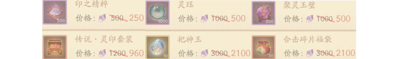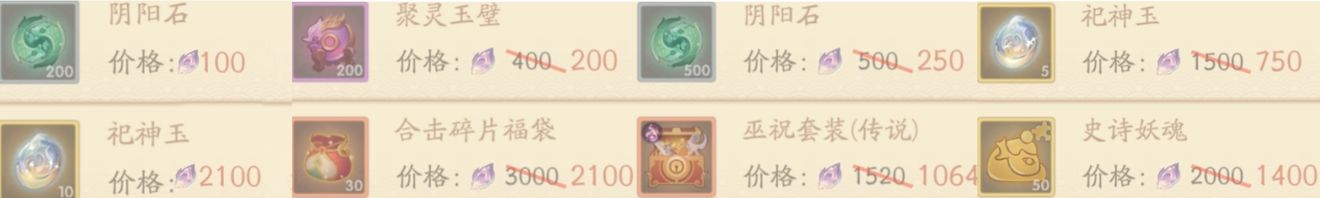 ①灵珏(上图右2):灵妖突破等级上限所需材料,等级越高突破所需要的越多。当然也是优先选择打折的购买,但在妖魄充足的前提下可以买完。