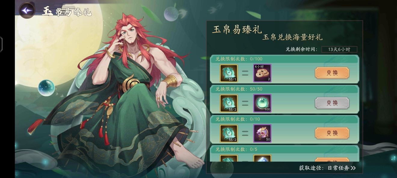 玉帛易臻礼白嫖、微氪优先选择兑换:阵容灵妖狗粮、灵珏这两个。因为这两个性价比高,毕竟四系本体到时候开心愿很容易就能获取,而光暗就先不要考虑 先换狗粮把品阶升上去多推图才是真